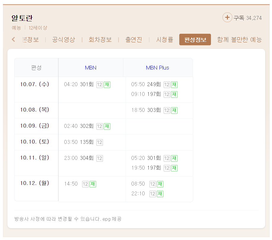 알토란 재방송 편성표 보기